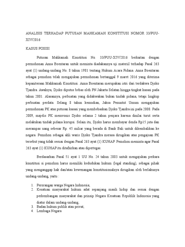Analisis Terhadap Putusan Mk Tentang Pk Oleh Jaksa
