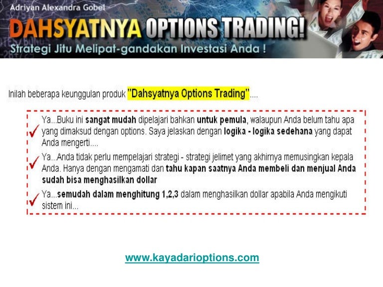Semua ini adalah bagian trading dan pasar keuangan dunia. Dear kaskuser, ini saya share tips bagaimana belajar option trading secara mandiri (otodidak), dengan alasan mungkin karena berhalangan dengan biaya pelatihan yang tinggi , dan punya waktu lumayan banyak utk belajar, jadinya mungkin anda cocok dengan cara ini. Edusaham.com — trading membuka lebar peluang untuk menjadi kaya.